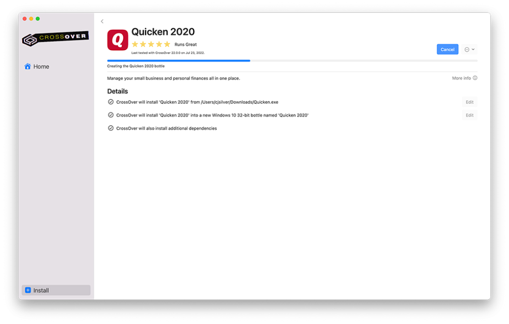 CrossOver 为 Windows 应用程序的文件创建一个容器,然后运行该程序的安装程序。