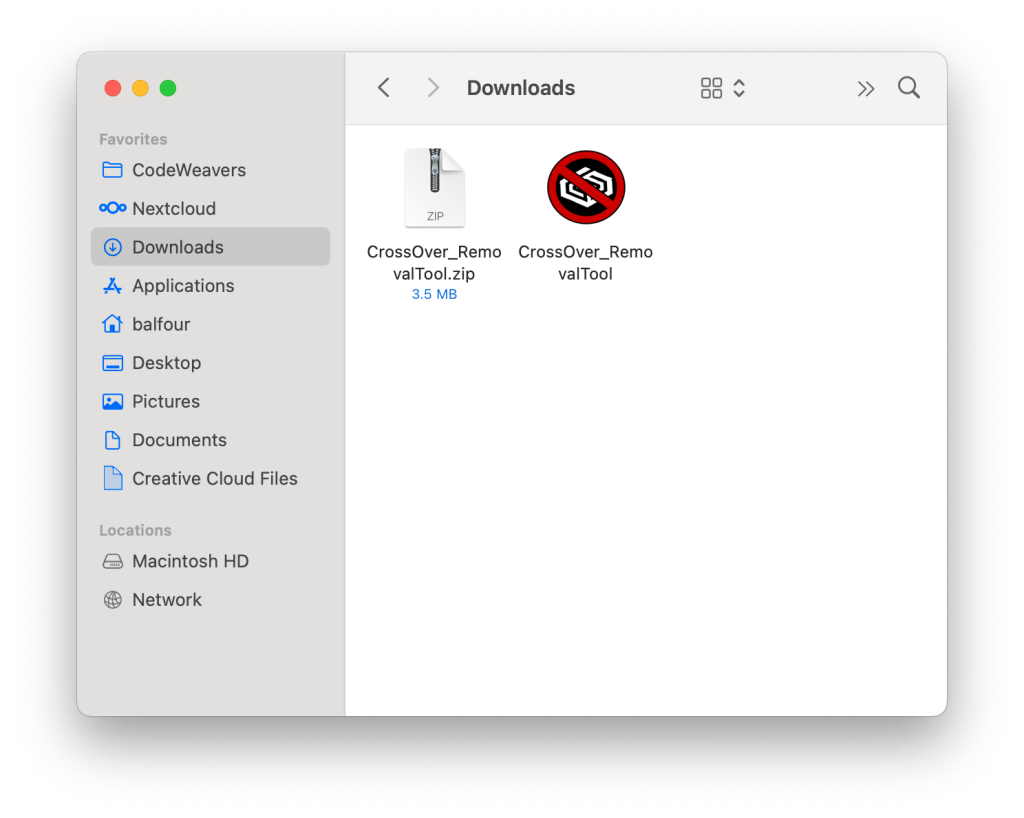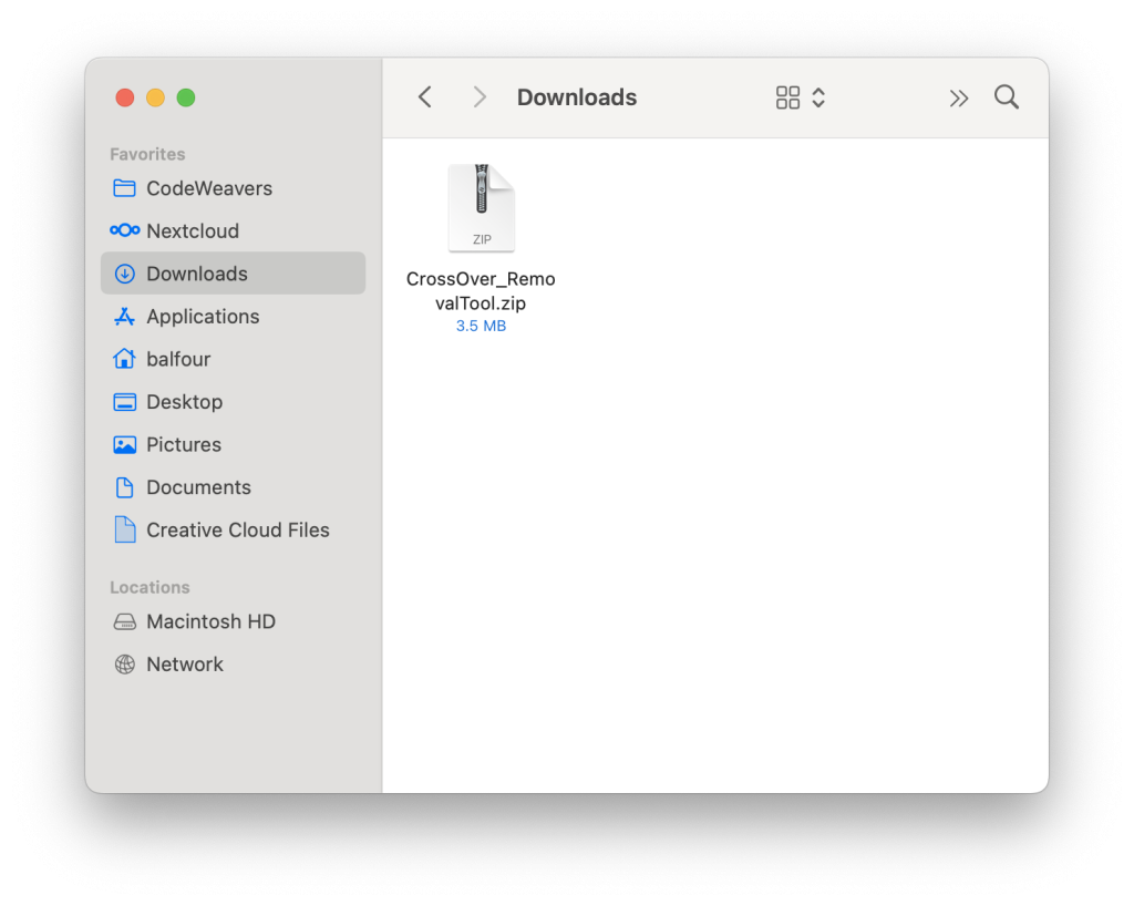 下载完成后,双击 CrossOver_RemovalTool.zip 图标解压文件。
