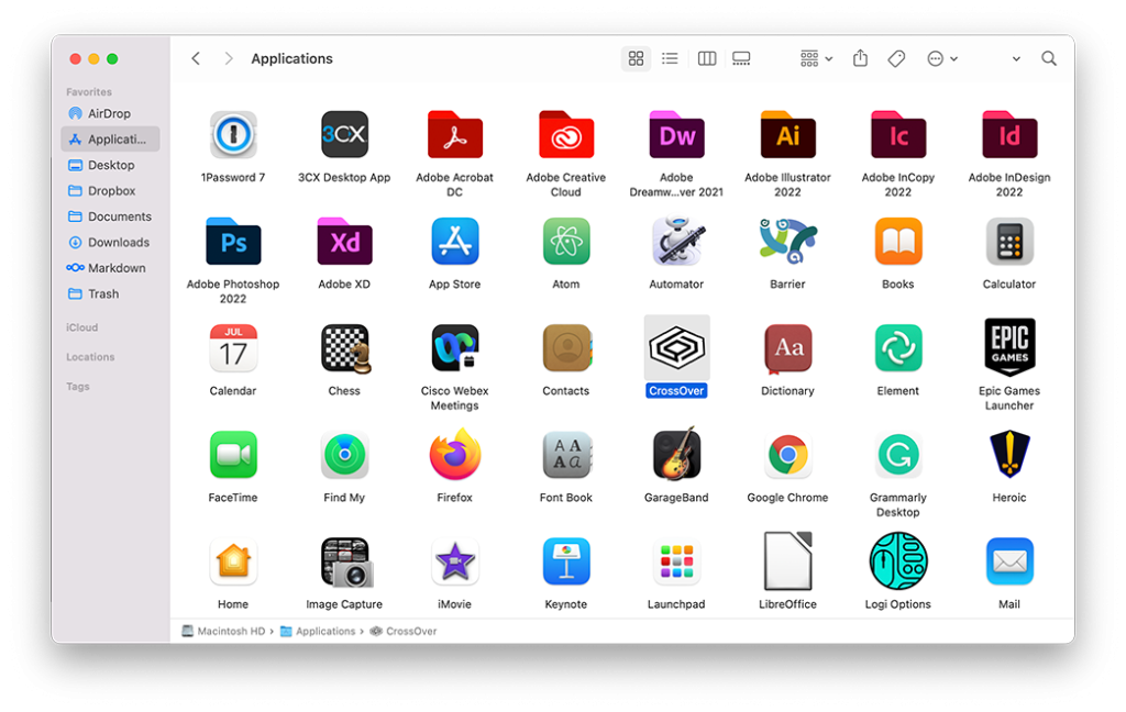 最后,前往主应用程序文件夹,将CrossOver应用程序图标拖至垃圾桶。